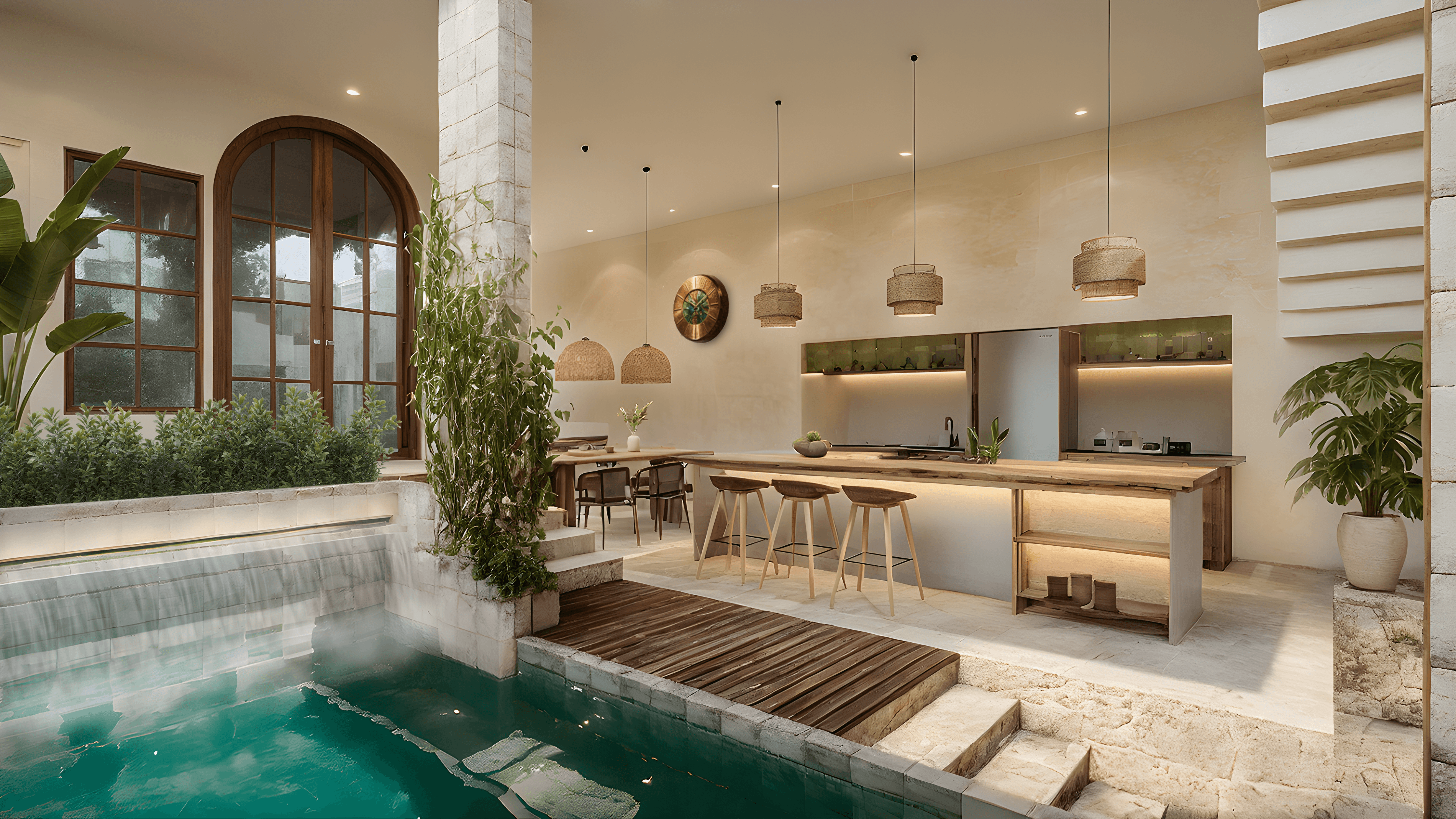 Private pool with ocean‑view deck; fully furnished, turnkey delivery.